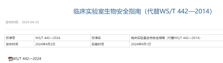 鏈接:臨床實驗室生物安全指南 WS/T 442—2024